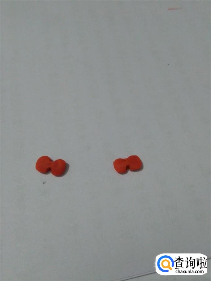 用拇指和食指把长方形的中间捏细,就成了两个蝴蝶结。