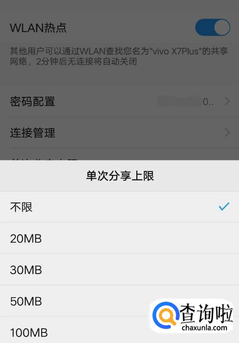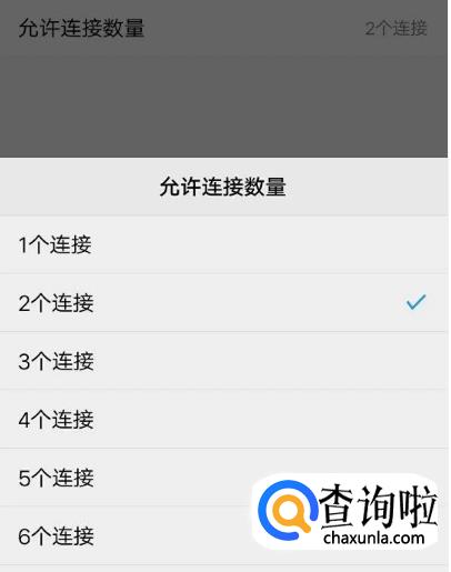 然后在个人页面点击连接管理,进入连接管理后,我们可以设置连接的人数,防止别人盗网。在单词分享上限页面,我们可以选择分享流量的多少。
