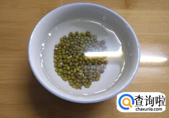 把红小豆和绿豆清洗干净后用水浸泡1小时。
