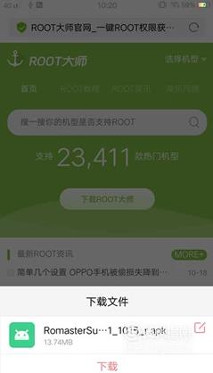 或者可以再手机浏览器中输入“root大师”手机版来下载并安装