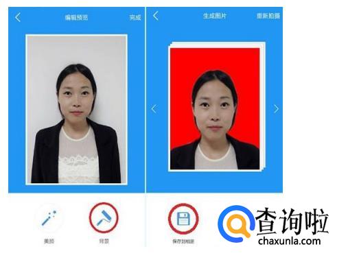 更换完背景后,证件照就制作完成了。系统会自动生成各种尺寸和背景色的照片,你可以保存在手机相册中。