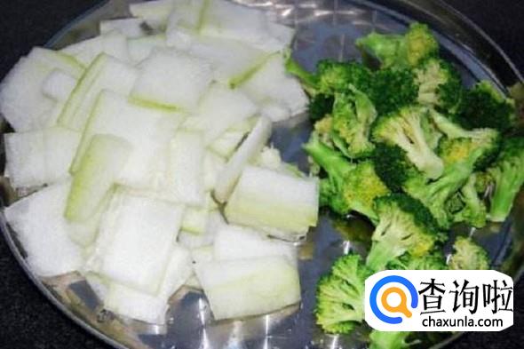 清炒冬瓜西兰花:将切好的西兰花放入锅中翻炒,之后再加入冬瓜片。冬瓜的好处我们已经说过了,而西兰花也不逊于冬瓜,它富含丰富的维生素C,并且热量很低、水分充足,食用西兰花不仅可以产生饱腹感,还可以满足人对蔬菜能量的需求。