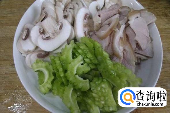 双菇苦瓜肉丝:将苦瓜和姜切成丝,将泡软的香菇切成丝。然后洗好放入正在炒肉丝的锅,炒熟即可出锅。苦瓜虽苦,但苦瓜含有的苦瓜素能够减少脂肪和多糖的摄取量。香菇可以降脂减肥,因此,二者的组合是十分好的。