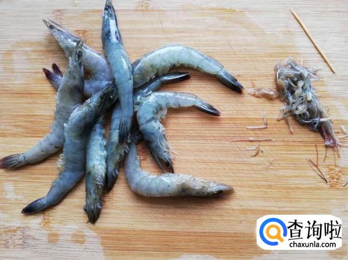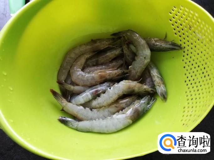 将虾去掉须子和虾脚,然后开背去掉虾线,再冲洗一下捞出沥水