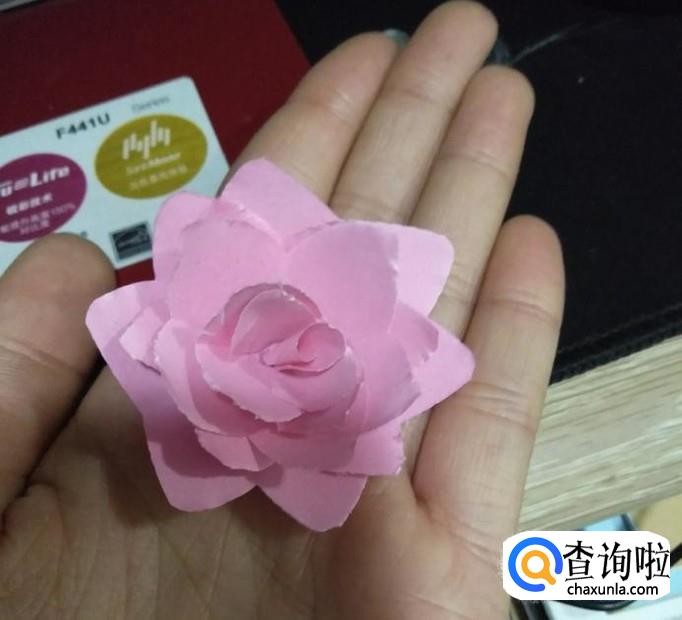 在最大的花瓣中心滴一滴胶水,如下图1,将第二大的花瓣放于其上,黏住,然后用同样的方法将所有花瓣粘起来如下图2