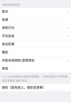点击投诉后,系统就会提示你选择你要投诉的原因,接着选择你投诉该微店平台的原因。