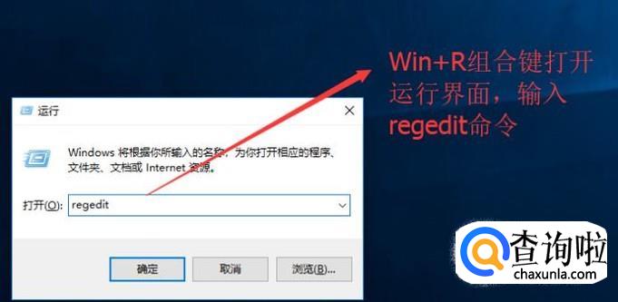 首先用Win+R组合键打开运行界面,在界面的输入框中输入regedit命令,如下图所示