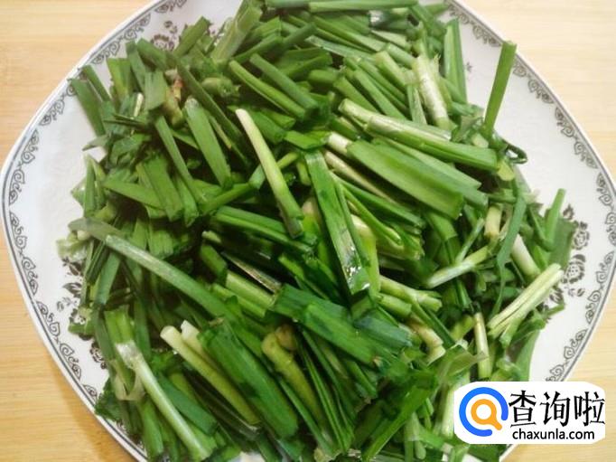 韭菜收拾清洗干净,控干水分,切成寸段。