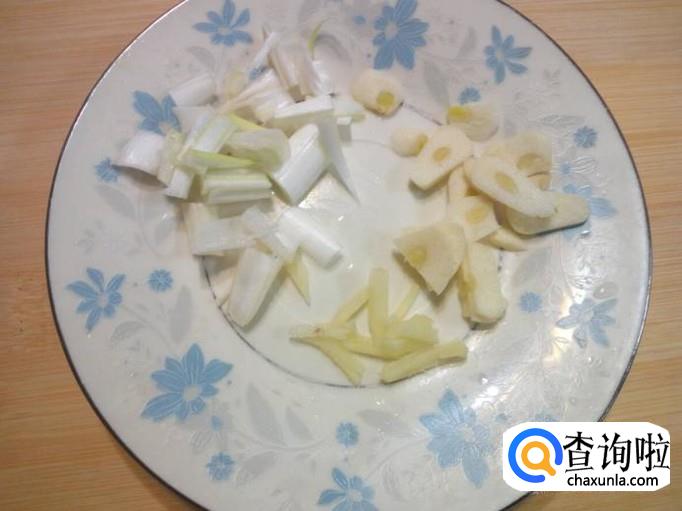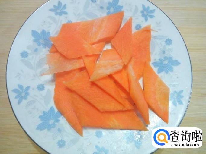 胡萝卜去皮,用水清洗干净,控干水分,切成片。切好葱,姜,蒜,备用。