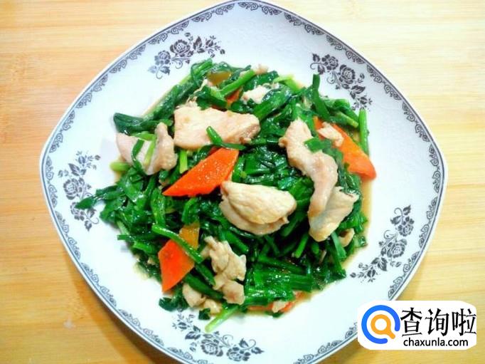 韭菜 200克,鸡胸肉 200克,胡萝卜 适量。