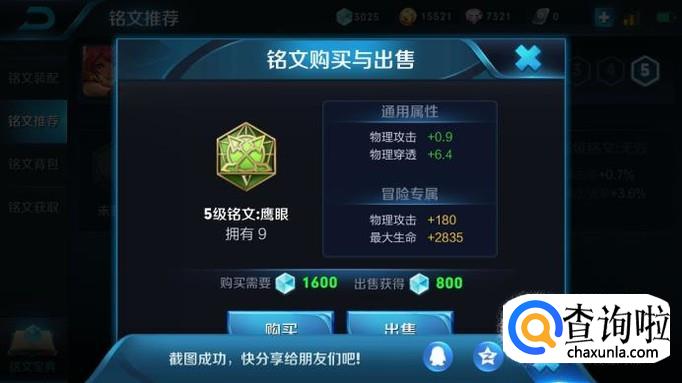紧接着,是绿色的铭文,经常搭配的都是鹰眼,增加物理攻击和物理穿透。