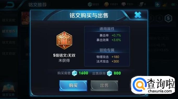 最后,红色的铭文搭配的是无双,增加的是暴击率和暴击效果,也可以增加物理攻击。