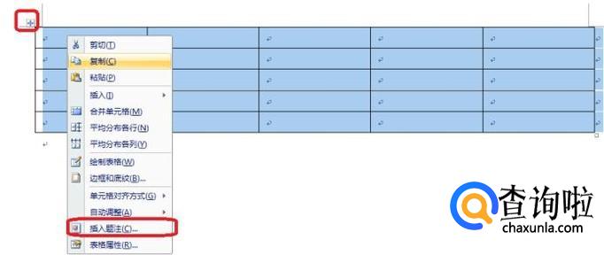 第一种方法,如图所示,点击表格左上角控制图标按钮,全选表格(也可以用鼠标全选),右键点击,在弹出菜单中选择“插入题注”。