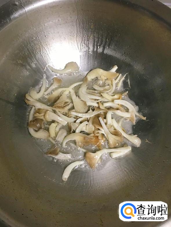 油锅烧热后,把秀珍菇放入大火翻炒。