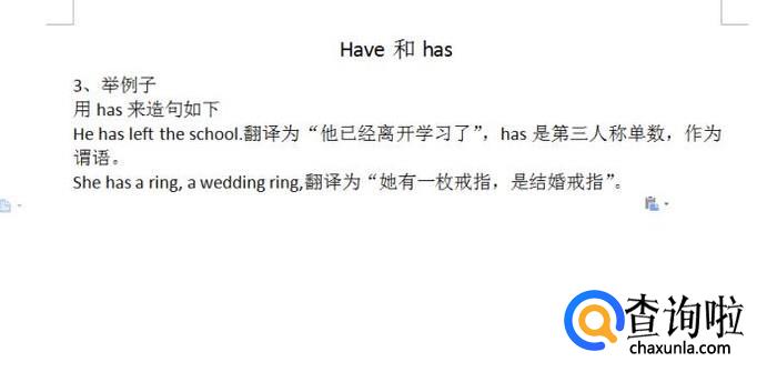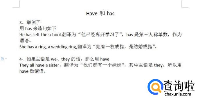 He has left the school.翻译为“他已经离开学习了”,has是第三人称单数,作为谓语。