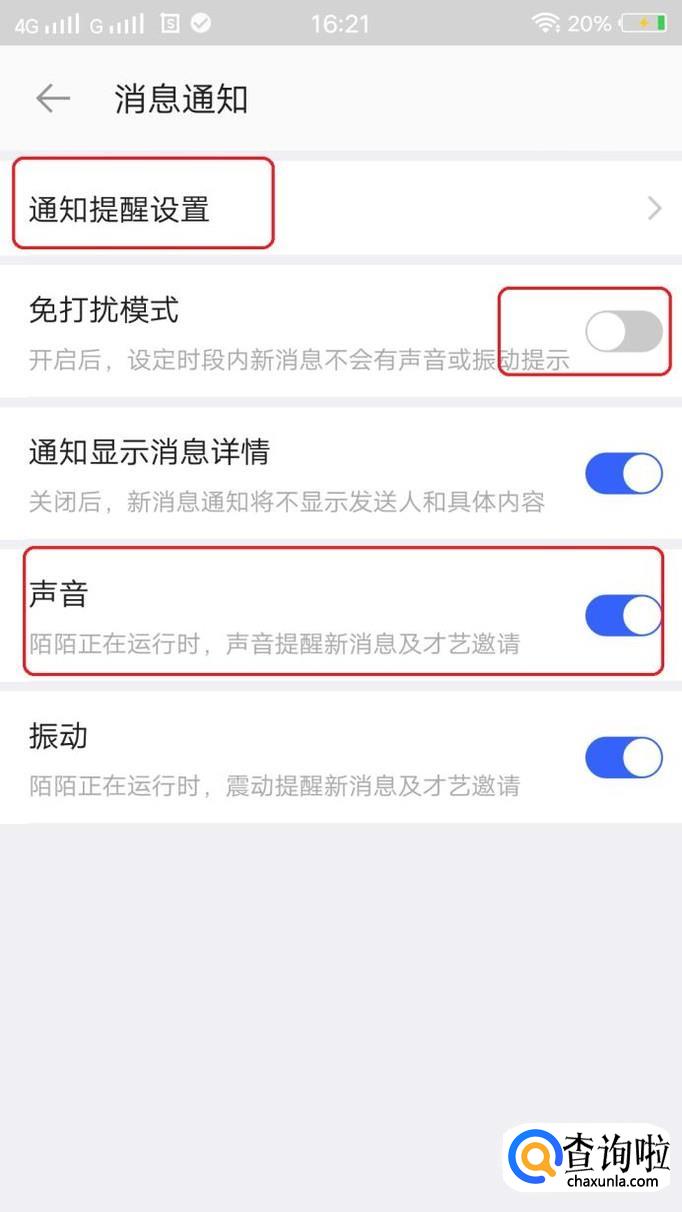 都设置完以后,如果新消息还是不提示,进行第二种设置,打开系统设置,点击“声音”,查看系统和媒体声音是否打开,勿扰模式是否处于关闭状态。检查排除完以后,应该陌陌就能接到新消息提示了,如果还是不行,建议卸载陌陌之后重新下载安装一次。