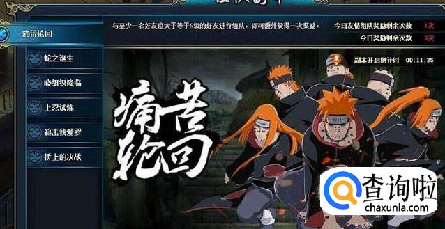 组队副本一天只开放两次,一次下午,一次是晚上,大家要注意看活动公告,不然错过了副本就得不到忍具了哦!