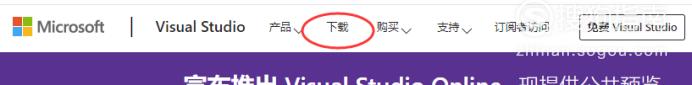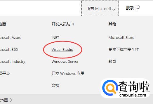 我们先在浏览器中打开微软的官网,可以直接搜索,也可以输入“https://www.microsoft.com/zh-cn/”。打开之后,我们在顶端的菜单栏中点击打开“更多”,然后再选择“Visual Studio”。