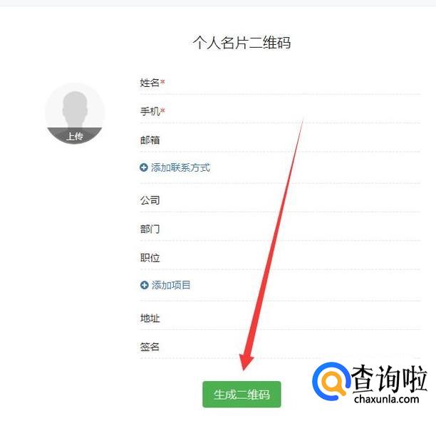进入之后,填写个人信息,点击“生成二维码”即可,如图所示。