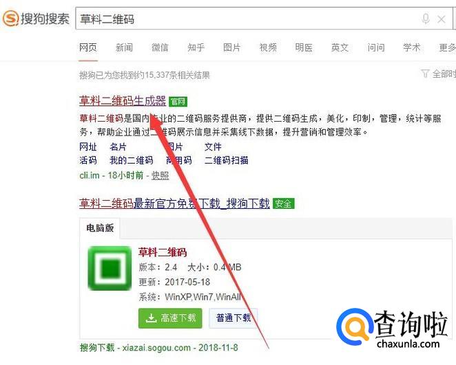 进入之后,搜索“草料二维码”,点击并进入,如图所示。