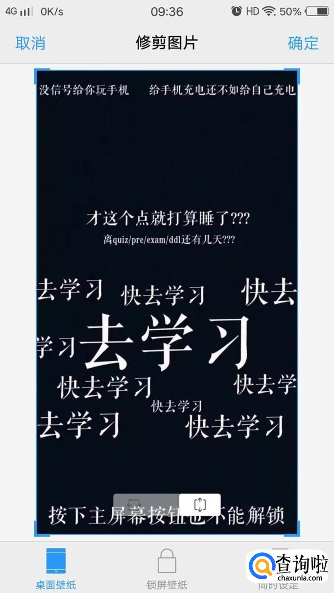 之后会出现以下界面,选择中间这个选项“锁屏壁纸”,点击右上方的“确定”,锁屏壁纸便设置好了。