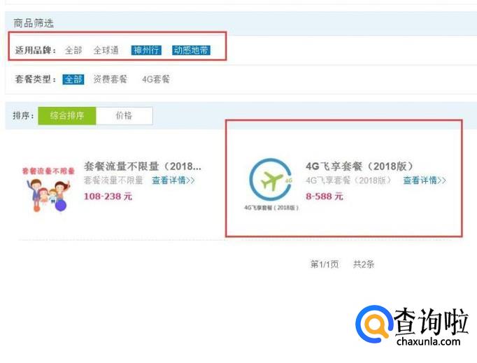 接下来,在打开手机套餐列表中,选择适合自己手机品牌的套餐,当然也可以选择切换其品牌,并查看其套餐业务详情。