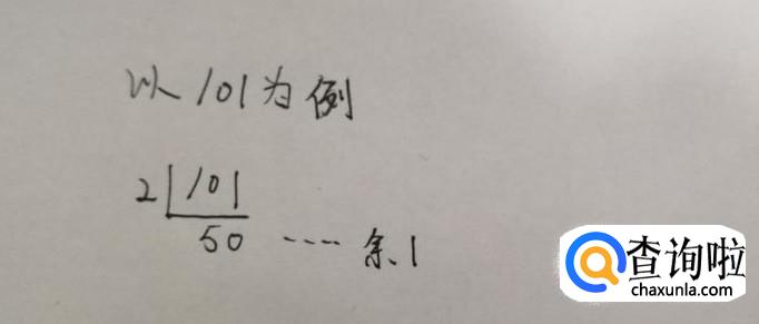 首先我们以十进制的数字101为例,通过短除法,把2当做除数,用101除于2,可以得到商为50,同时得到余数1