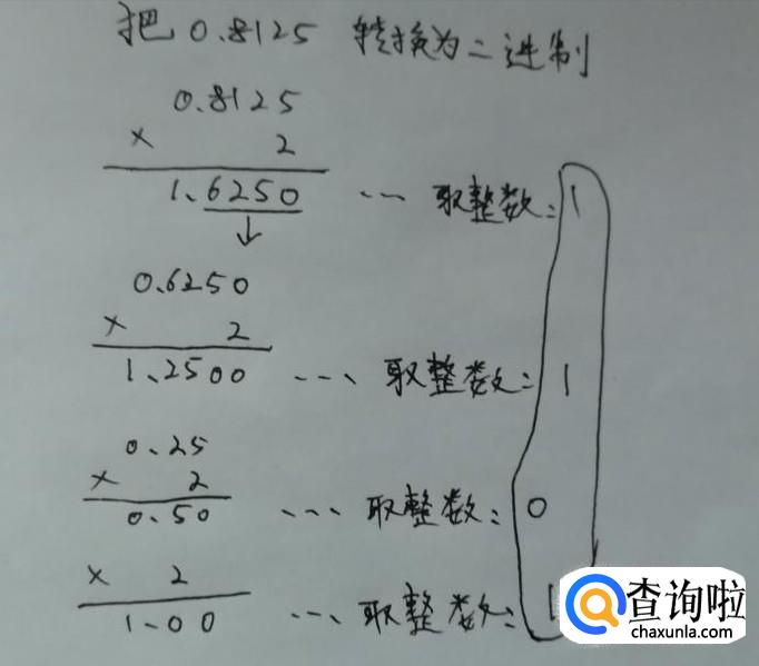 首先把小数部分的0.8125乘于2,得到一个结果1.6250,同时取整数部分,得到数字1