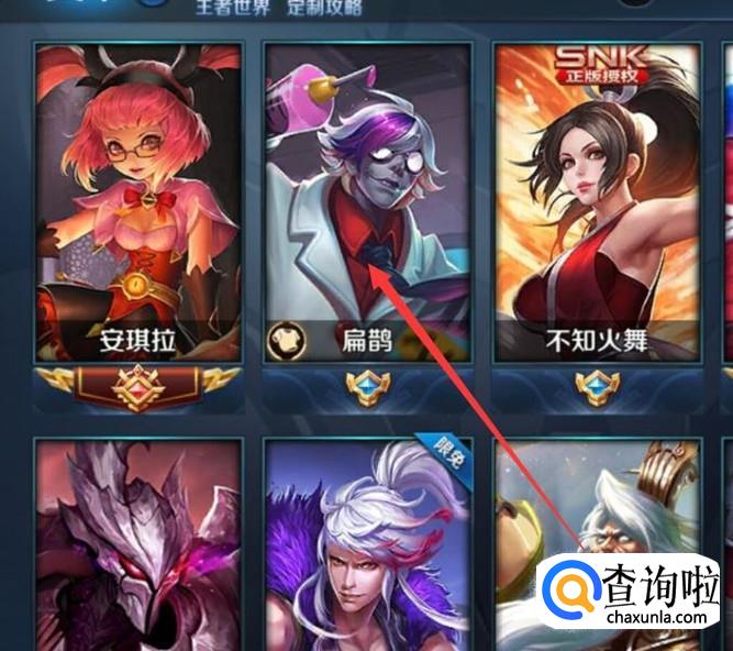 进入之后,找到可以使用星元皮肤的英雄,点击并进入,如图所示。