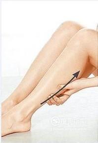 摩擦按摩,涂抹乳液后,用手指用力按压皮下脂肪较多的部位。专注于膝盖周围的膝盖将使小腿的前侧坚固平滑。