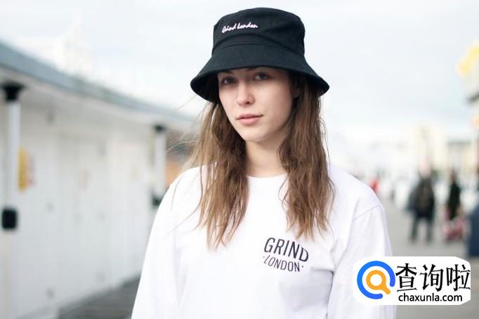 黑色渔夫帽,搭配白色卫衣。这是比较日常的打扮。这样穿搭起来非常清爽休闲。