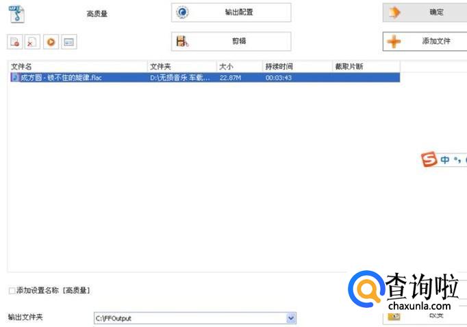 在出现的界面点“添加文件”,然后找到你要转换的FLAC音频添加上去,记住下面的输出路径(也可以自己设置路径),点上面的“确定”。