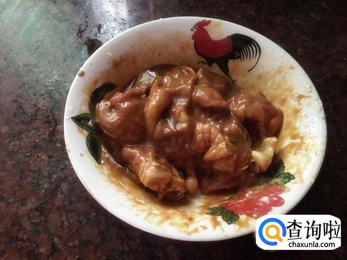 将鸡腿肉洗干净,剁成块,放入生抽,蚝油,老抽,腐乳,配料根据鸡肉的数量而定,也可以将鸡腿肉换成鸡翅。