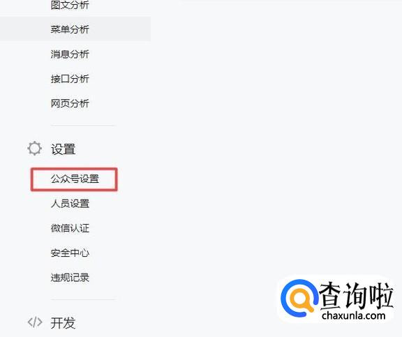 之后我们下拉界面,在左边找到公众号设置,点击它;