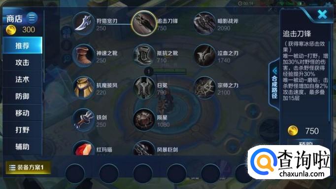 首先,打野肯定要先出一把打野刀,而韩信是属于刺客的一种,那么就应该出一把“追击冲锋”。