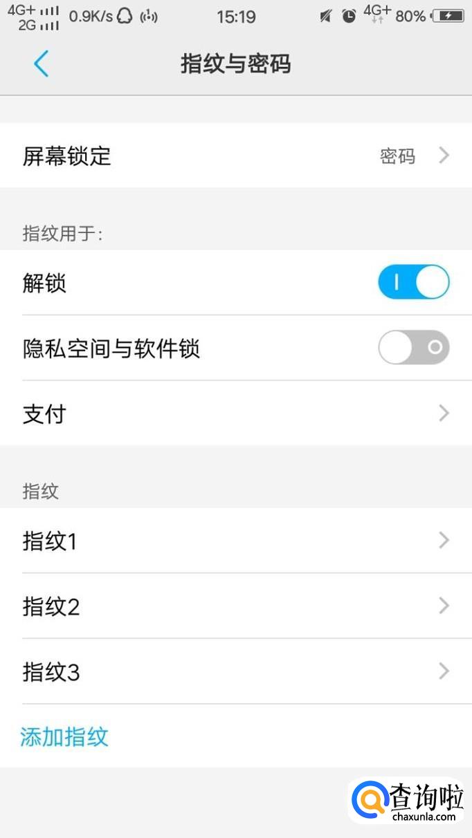然后,我们在跳出来的众多选项中手动找到指纹与密码,并且点击它。