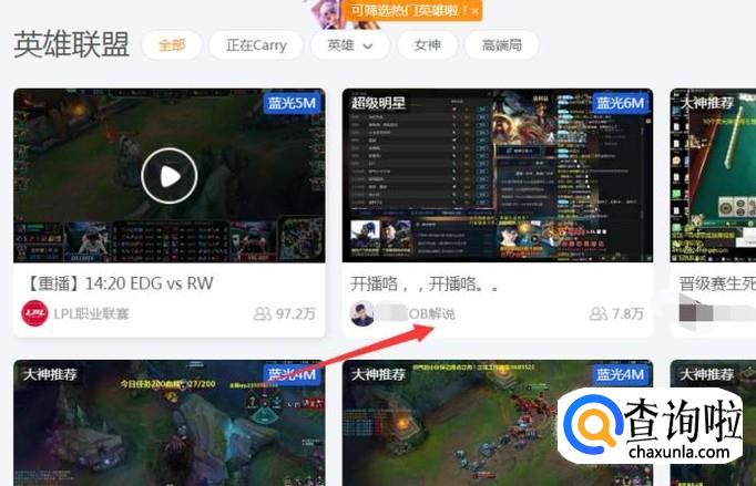 然后你会看到里面有很多主播,如下图,大家就可以在这个直播间是专门ob别人的比赛的,什么小狗faker等知名选手都第一时间ob,所以大家想看直接到直播间看就行了。