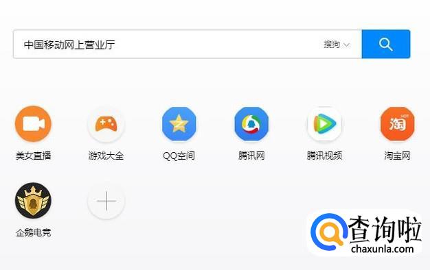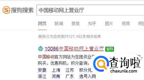 首先,在搜狗浏览器中输入中国移动网上营业厅并点击右侧的搜索按钮,如下图所示。