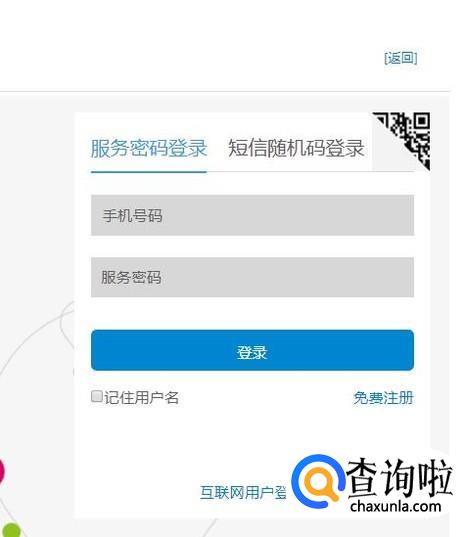 接着输入我们的手机号码以及服务密码并点击登录,如下图所示。
