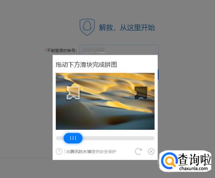 输入不能登录的QQ帐号,根据系统提示拖动拼图验证,验证成功进入下一步。