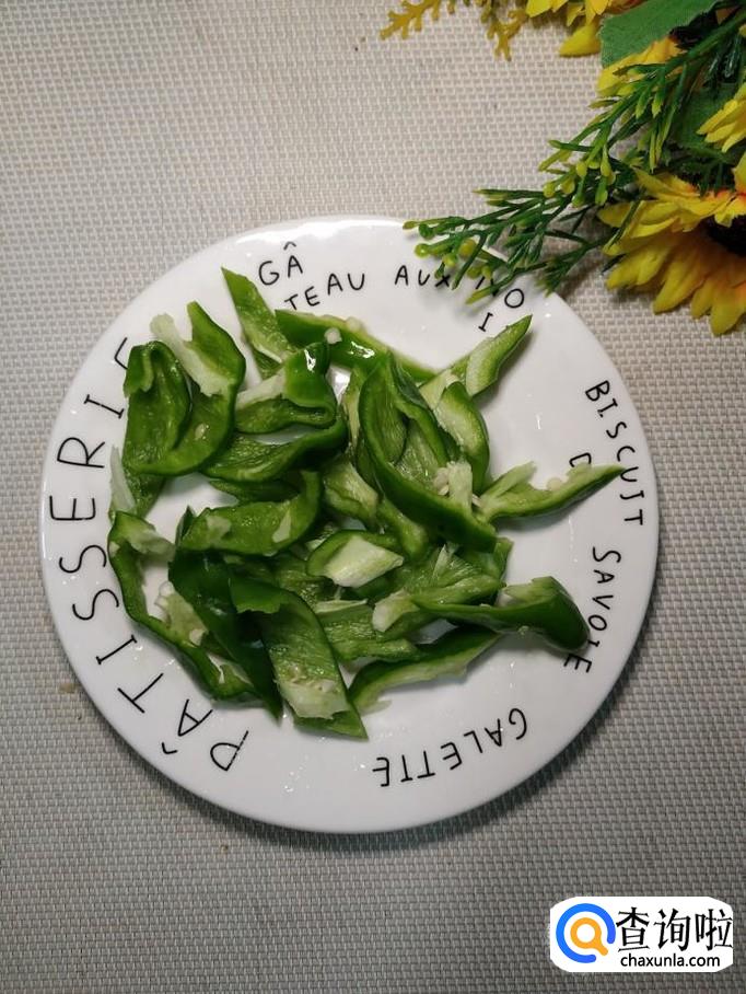 将娃娃菜切成长条儿,然后将青椒切成丝,分别放入盘中备用。