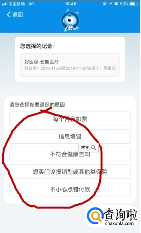 之后我们选择自己想要取消的保单,再选择退保的理由,最后点击“点次退订”。