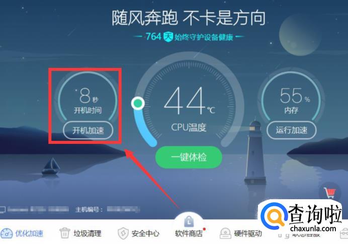 进入【电脑管家】后,在该页面点击【开机加速】。