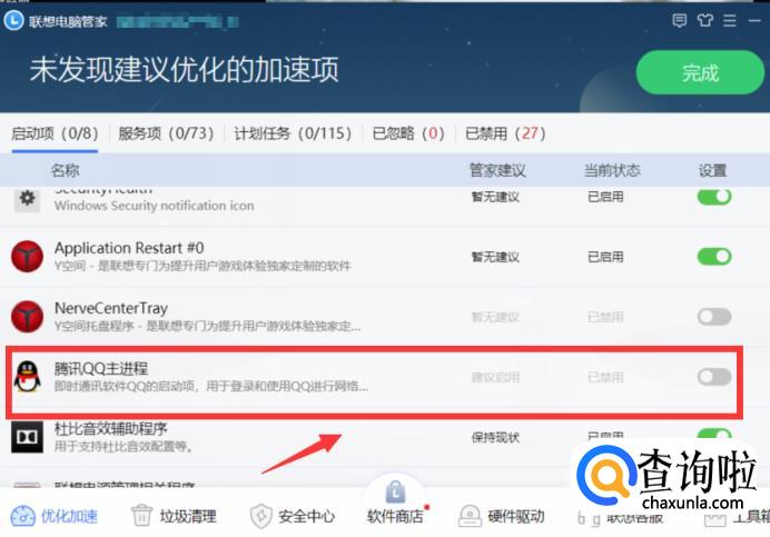 为了检测选择禁用的软件是否已经被禁用,可以点击进入【电脑管家】。