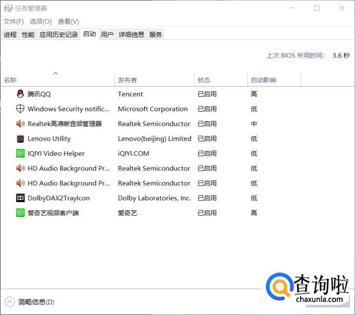 进入【任务管理器】后,在该页面中就是【启动】的内容。