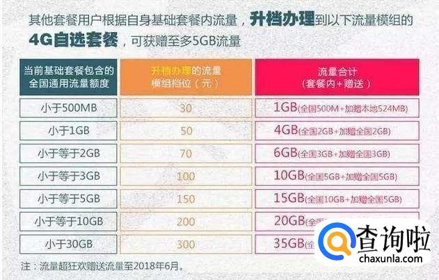 4G飞享套餐,后付费版,价格从18元到588元不等,是先用后付费的,当月未消费的剩余流量可以结转至次月使用。