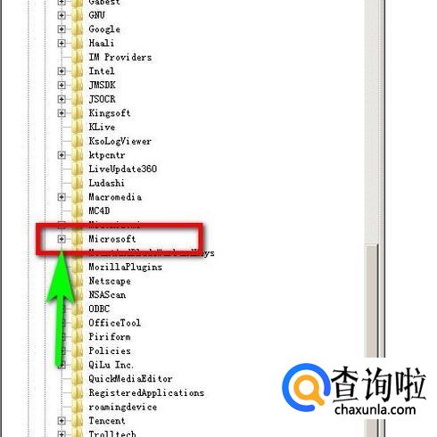 从中找到“Microsoft”,点击其左侧的+号,把隐藏的内容展开。