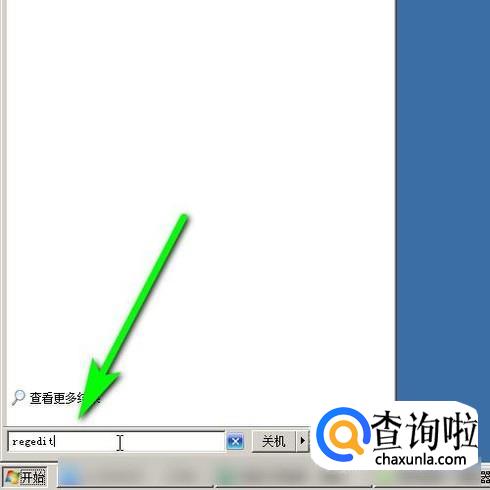 鼠标点击电脑左下角的“开始”按钮,弹出的面板中在编辑里输入:regedit