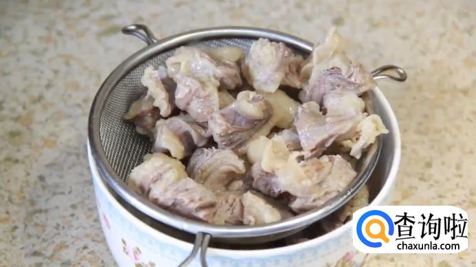 将切好的牛腩冷水下锅,开大火煮开之后,捞出来沥干水。