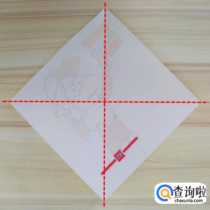 首先取一张正方形的纸片,折出两条对角线折痕;